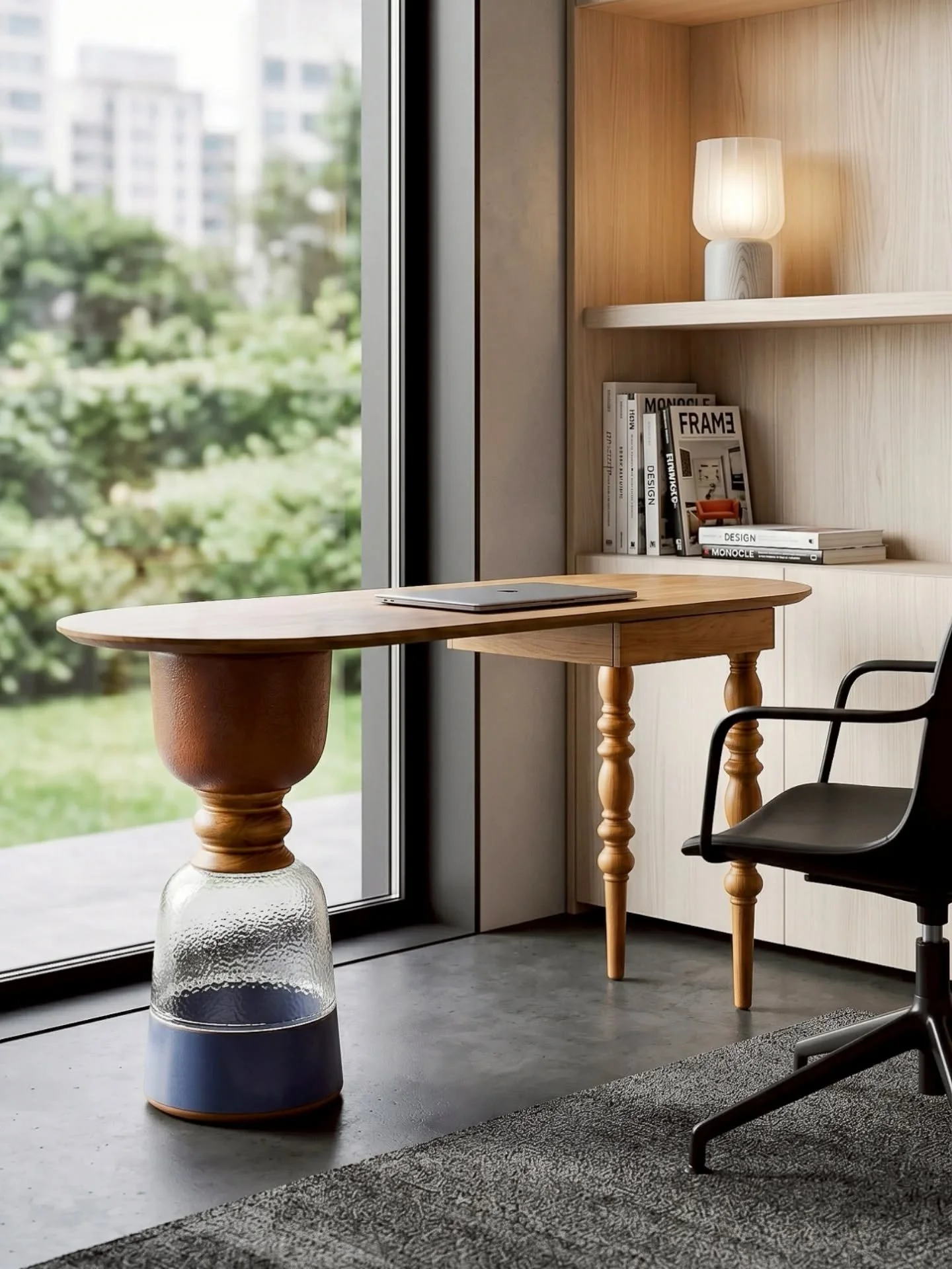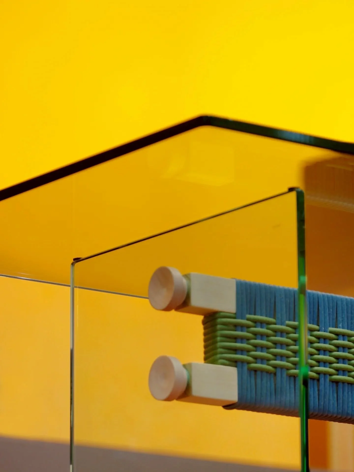 Hand-woven rice husk rattan on invisible glass — tool-free, flat-pack, and gentle to the world.